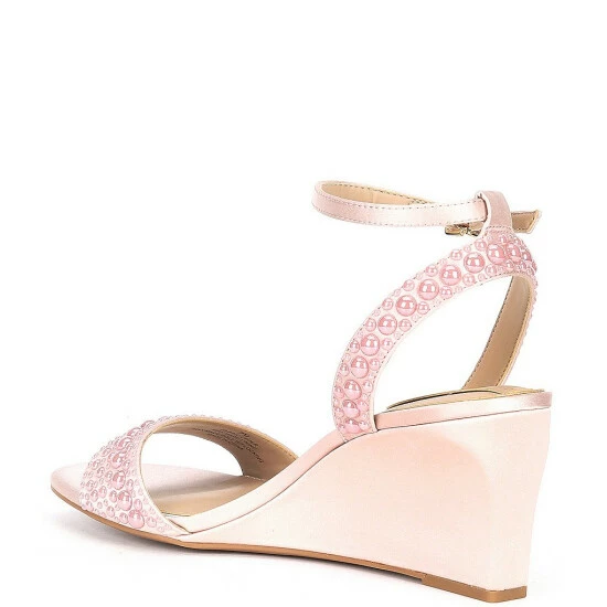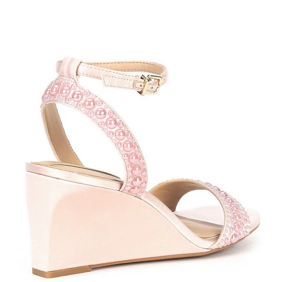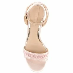 - Satin upper with faux pearl embellishments