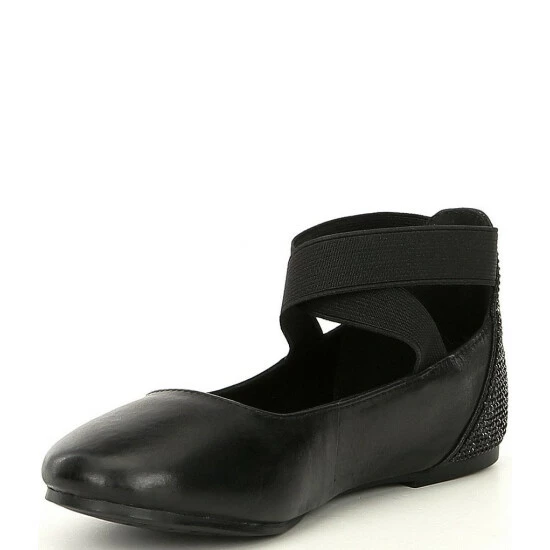 From Copper Key, the Girls’ Loviee Rhinestone Leather Ballet Flats feature:
