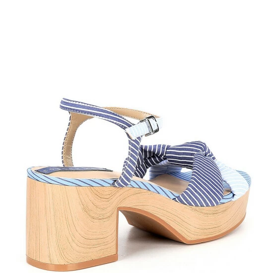 From Copper Key, the Sunnydays Striped Ankle Strap Sandals feature: